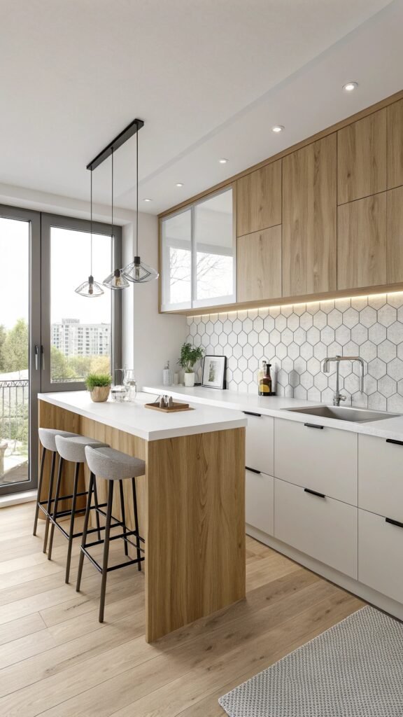 4. Modern Scandinavian Kitchen with Hexagon Backsplash