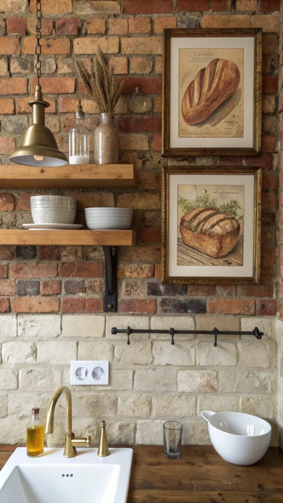 4. Vintage Bread Art and Rustic Brick Gallery Wall
